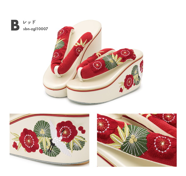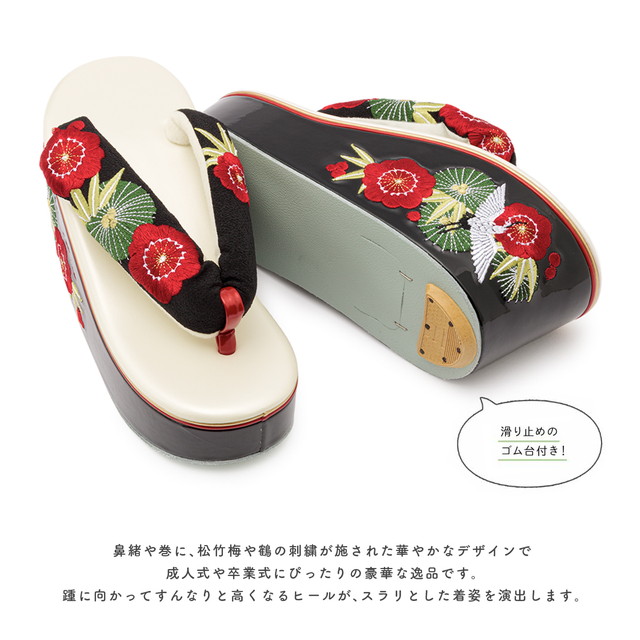 成人式 草履 レディース 振袖 厚底 白 黒 赤 松竹梅 鶴 刺繍 縮緬 ちりめん ヒール草履 ゾウリ 女性用 フリーサイズ 送料無料