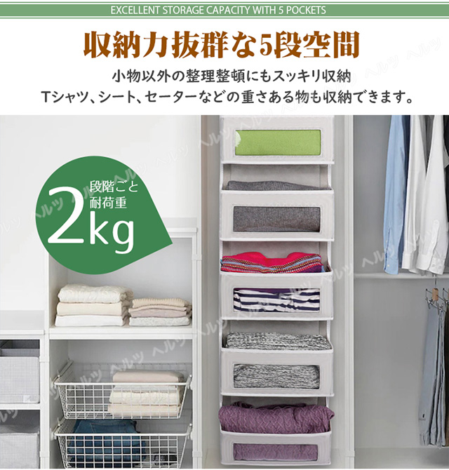 「クーポン配布中」「即納」「5段式」ウォールポケット ドア掛け収納 ポケット クローゼット収納 ポケット透明窓 2種類フック付 クリア 型崩れしにくい 吊り下げ収納 大容量 折りたためる おもちゃ収納 帽子 靴下 衣類整理 省スペース 取り付け簡単