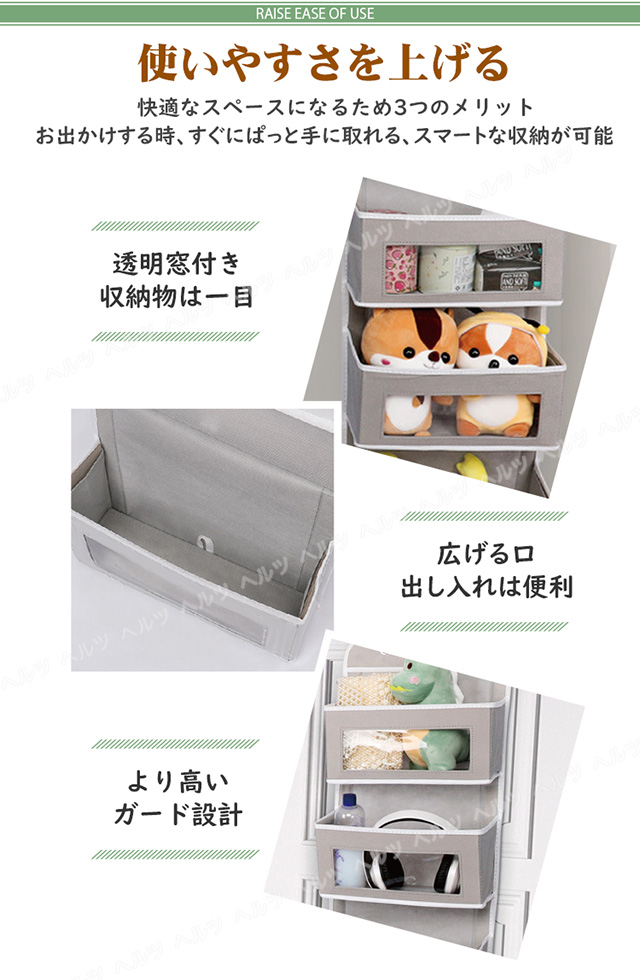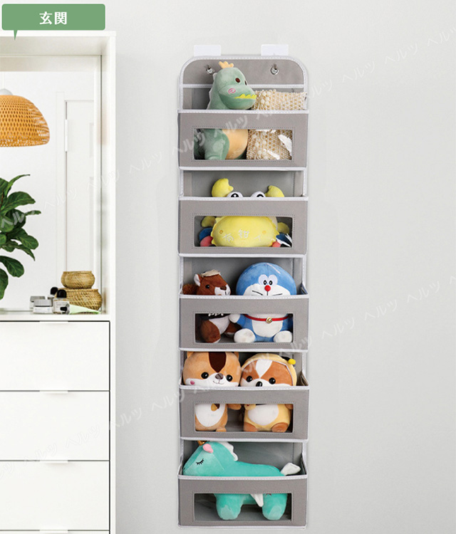 【大容量&透明窓設計】5段のウォールポケットで、化粧品、ぬいぐるみ、タオルなど多くの雑貨を収納できます。透明窓付きの設計なので、収納されているものを見えやすく、財布やカバン、スカーフ、ヘアアクセサリー、おもちゃ、雑誌などの出し入れも便利です。