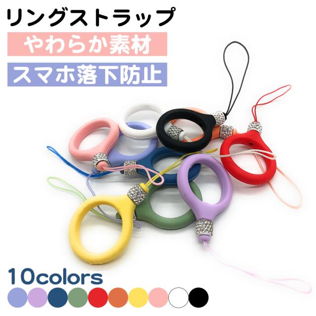 スマホ リング ストラップ ラインストーン 落下防止 キラキラ ホルダー iphone galaxy android 互換品 メンズ レディース 指 かわいい 固定 シリコン 丈夫 全機種対応 スマホリング 便利 スマホストラップ 2way スマホ ストラップ ピンク ホワイト ブラック イエロー 送料無料