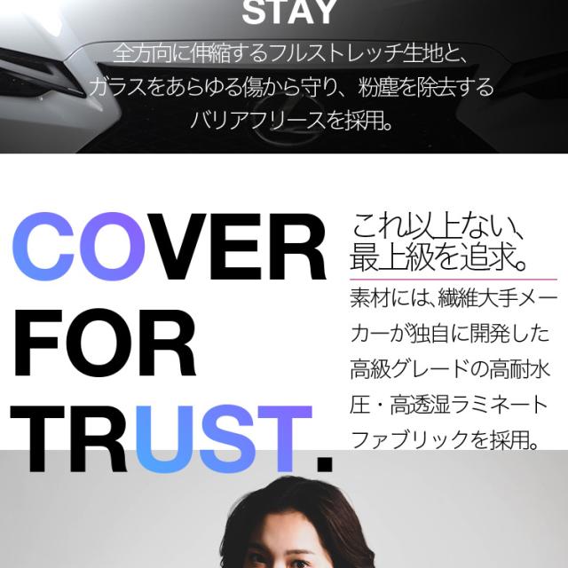 【デメリット表記】本製品は、簡易シェード、消耗品となります。中(半年)、長期(一年以上)の耐久性は保証できません。※使用状況や使用年数によって、変色や防水ラミネート、撥水加工の経年劣化が起こります。(注)本製品は、フロントガラスを保護するため、フリース素材を採用しております。気温の上昇により、雪や凍結がとけた場合や雨天時は、フリース素材に水が染み込みますので、日陰のつり干しで十分に乾かしてからご使用ください。