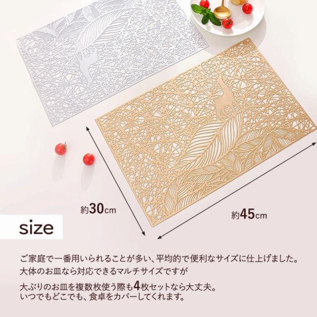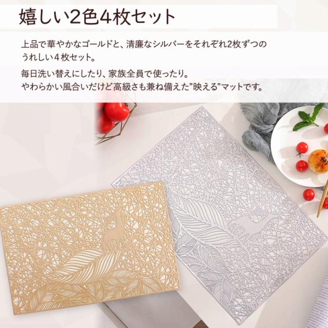 | 主な仕様 | 【素材】pvc素材 【サイズ】約45×30cm 【重量】約120g 【カラー】ゴールド×2枚+シルバー×2枚 |