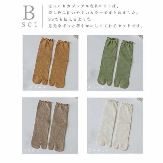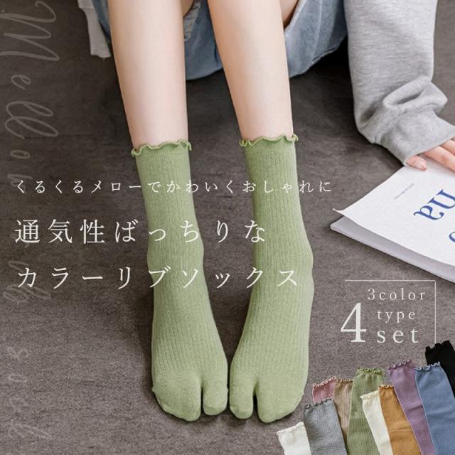 足袋型 リブ ソックス 4足セット コットン 3種 レディース ファッション 通気性 メロー メロウデザイン くすみトーン ニュアンスカラー デザイン プレゼント agesugi_sfa