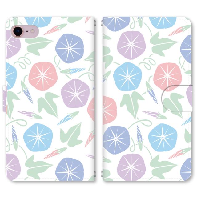 スマホケース 手帳型 iPhone13 iPhoneSE2 アイフォン 8 aquos sense GooglePixel xperia galaxyなど多機種制作対応 m012_朝顔柄