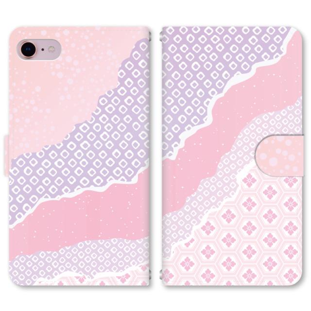 スマホケース 手帳型 iPhone13 iPhoneSE2 アイフォン 8 aquos sense GooglePixel xperia galaxyなど多機種制作対応 m013_紫色和紙柄