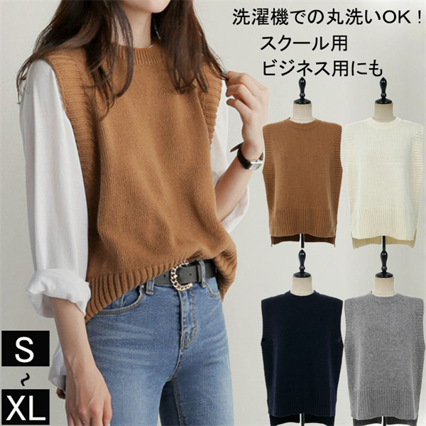 ニットベスト レディース 春 秋 トップス サイドスリット ノースリーブ 重ね着 レイヤード アシメ アシンメトリー カットソー 上着 ゆったり オシャレ ゆるニット 春ニット 無地 大人 オフィス 韓国風 シンプル カジュアル ホワイト グレー ネイビー ブラウン dk151d3d3s1