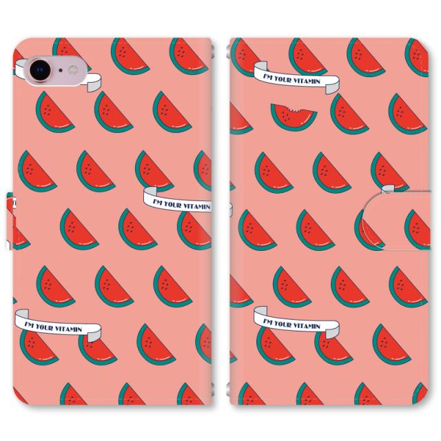 スマホケース 手帳型 iPhone13 iPhoneSE2 アイフォン 8 aquos sense GooglePixel xperia galaxyなど多機種制作対応 m041_スイカ