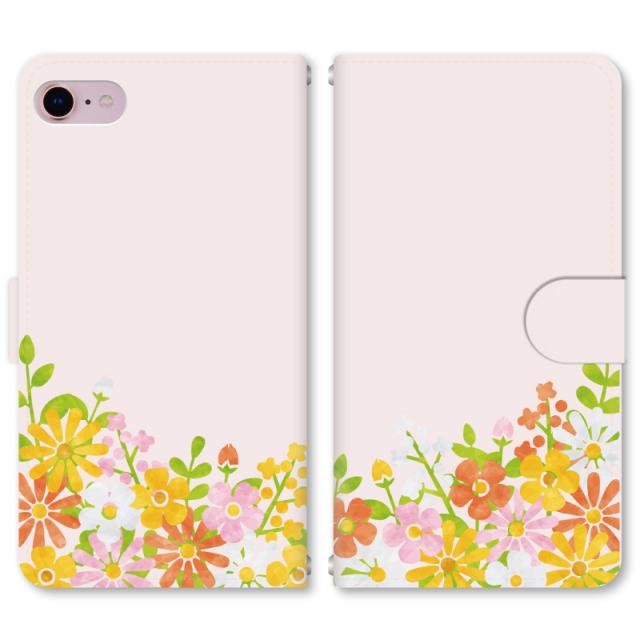 スマホケース 手帳型 iPhone13 iPhoneSE2 アイフォン 8 aquos sense GooglePixel xperia galaxyなど多機種制作対応 m075_水彩 ピンクの花畑