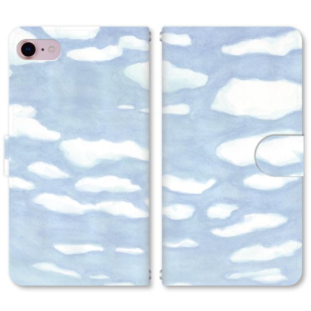 スマホケース 手帳型 iPhone13 iPhoneSE2 アイフォン 8 aquos sense GooglePixel xperia galaxyなど多機種制作対応 m078_水彩 青空