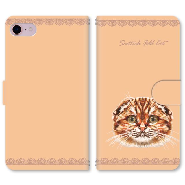 スマホケース 手帳型 iPhone13 iPhoneSE2 アイフォン 8 aquos sense GooglePixel xperia galaxyなど多機種制作対応 m093_レース柄茶猫
