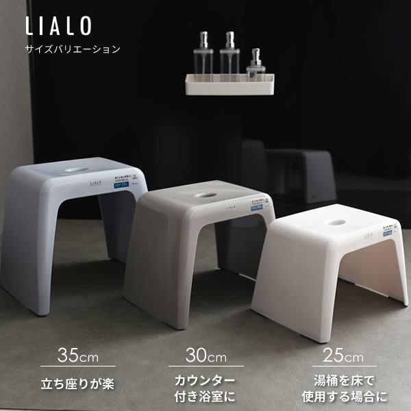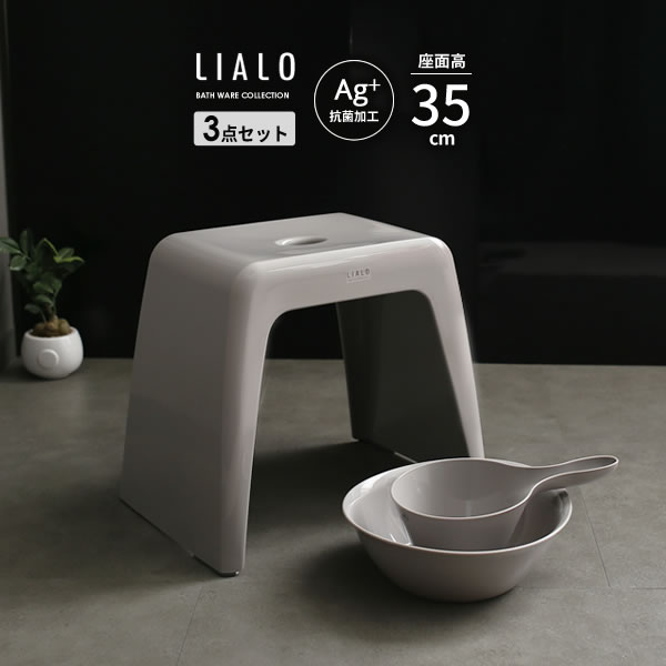 風呂椅子セット LIALO リアロ 3点セット(手おけ+湯おけ+風呂イス) 座面高さ35cm グレー | バスチェア バススツール 手桶 湯桶 風呂いす ニュアンス くすみ カラー バス用品 腰掛け 浴室 洗い場 抗菌
