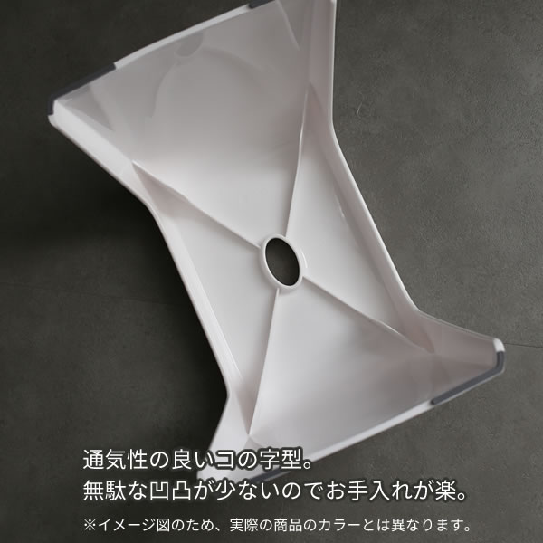 通気性抜群の風呂イス風呂椅子は通気性の良いコの字型。湿気がこもりにくく乾きやすい形状です。
