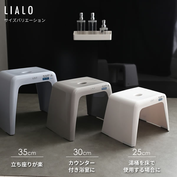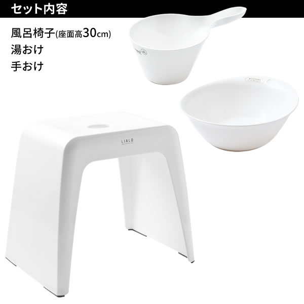 風呂椅子セット LIALO リアロ 3点セット(手おけ+湯おけ+風呂イス) 座面高さ35cm ホワイト | バスチェア バススツール 手桶 湯桶 風呂いす ニュアンス くすみ カラー バス用品 腰掛け 浴室 洗い場 抗菌