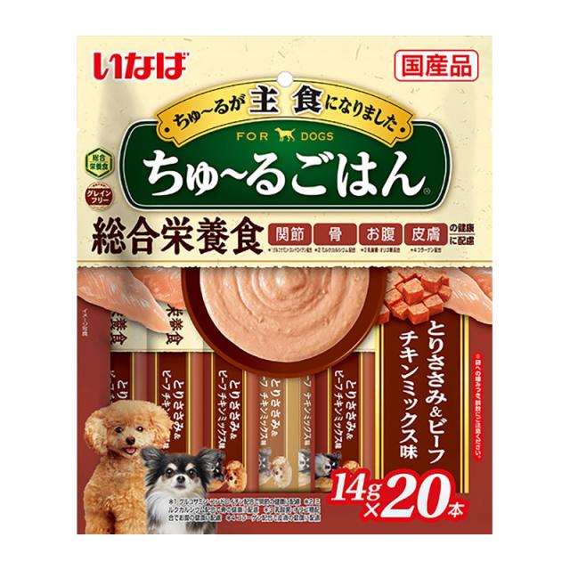 いなばペットフード いなば ちゅ〜るごはん とりささみ&ビーフ チキンミックス味 14g×20本 犬用おやつ 【北海道・沖縄・離島配送不可】