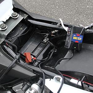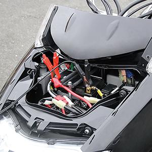・バッテリーターミナルを外さずに充電できます。(※原付などのカプラタイプを除く)