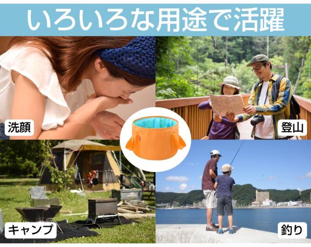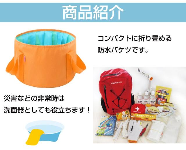 ・折りたたみ可能で持ち運びに便利な防水バケツです。 ・災害などの非常時は洗面器の代わりなど防災グッズとして活躍します。 ・キャンプやバーベキューなどのアウトドアでの場面でも使用できます。 ・折りたたんで専用の袋にコンパクトに収納できるので持ち運び簡単♪ ・バケツとは思えない可愛いカラーを揃えました。 |