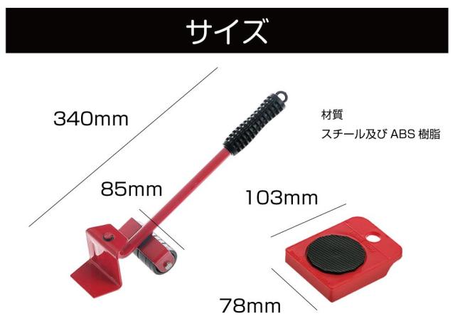 ・テコの原理を利用した耐重150kgの移動機です。 ・女性でも家具の移動がラクラク♪簡単に部屋の模様替えができます。 ・360度回転する台座で片手でもスムーズに方向転換できます。 ・重い荷物を無理して持って、腰や肩を痛めないようにしましょう。 |