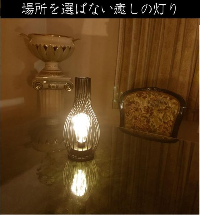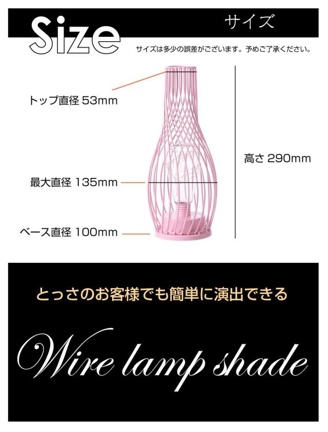 ワイヤーシェード/ベース:スチール 電球ボトル:軟質プラ 電池ボックス:PP |