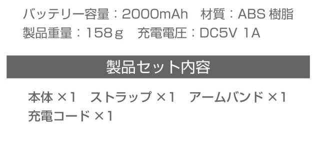 本体×1 ストラップ×1 アームバンド×1 スタンド×1 充電コード |