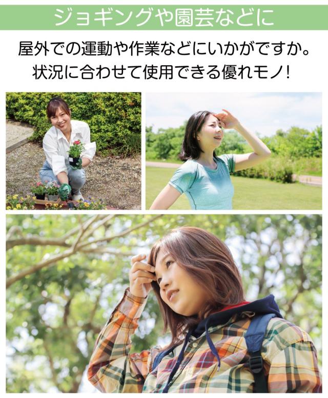 ・2重構造で状況によって使い分けができるUVカットサンバイザーです。 ・外で畑作業や運動をする際の熱中症対策、日除け対策としてはもちろん簡易的な飛沫感染防止としても使用できます。 ・夏のマスク焼け対策にも! |