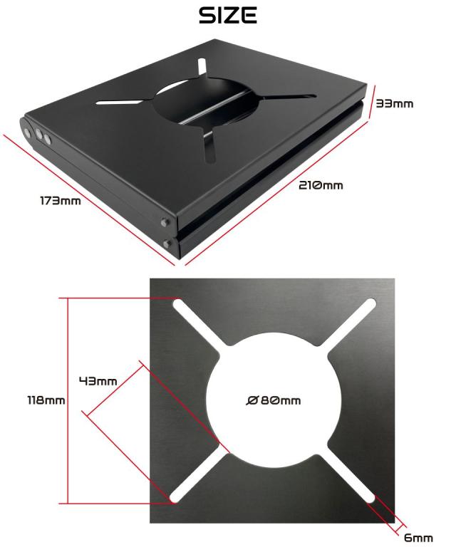 収納時:W173 × H210 × D33mm 組立時:W320 × H210 × D85mm コンロ:Φ80 × H43 × D6mm |