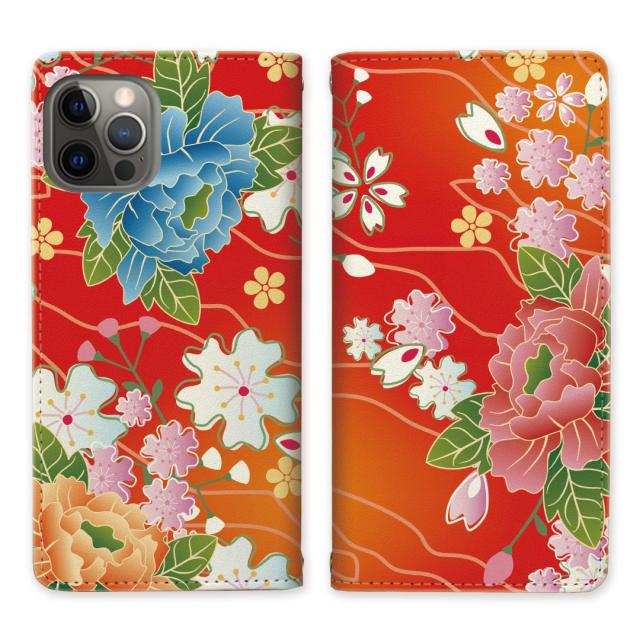 apple iPhone12 Pro ベルトなし 手帳型 スマホケース スタンド機能 アイフォン12プロ 【着物デザイン】マグネットでピタッと閉じる スマホケース スマホカバー 手帳ケース 手帳カバー
