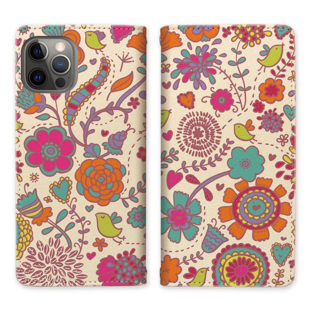 apple iPhone12 Pro ベルトなし 手帳型 スマホケース スタンド機能 アイフォン12プロ 【花小鳥デザイン】マグネットでピタッと閉じる スマホケース スマホカバー 手帳ケース 手帳カバー