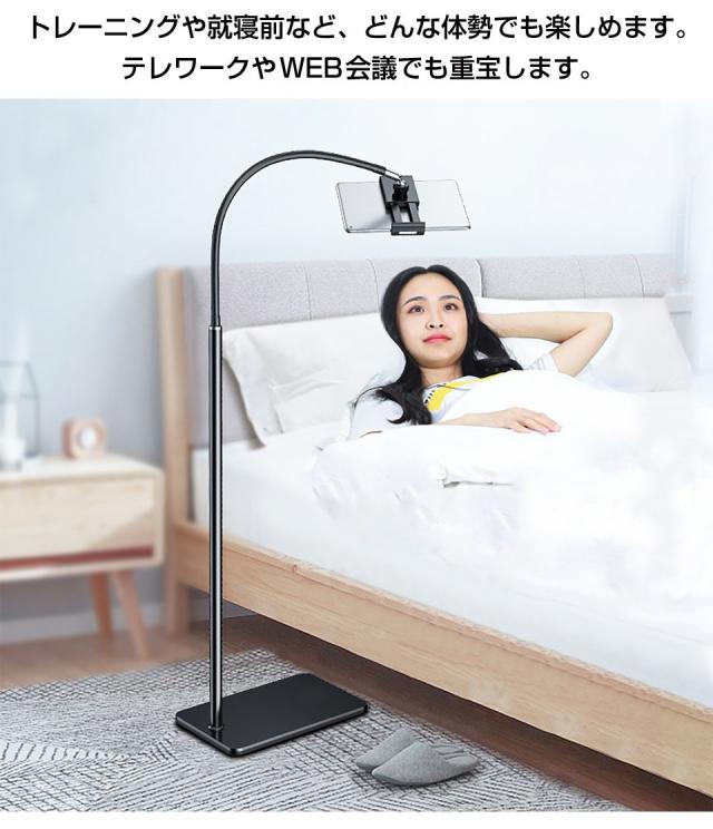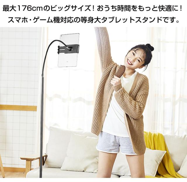 タブレットスタンド 寝ながら 在宅 高さ調節 スマホスタンド おしゃれ 撮影 高さ 調節 高度 角度調整可能 携帯スタンド 固定 可動式 軽量 デスク ホルダー付 最長176cm HA-ST175 送料無料 翌日配達 即日出荷