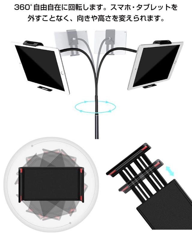 タブレット スタンド アーム 360度回転 充電 スマートフォンスタンド スマホ立て テレワーク 車内テレワーク 在宅勤務 zoom skype リモート会議