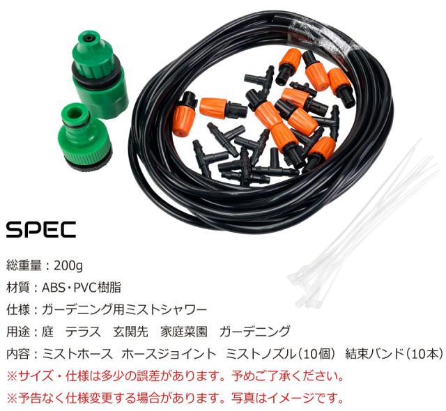 ホース×1 ホースジョイント×2 ミストノズル×10 結束バンド×10 |