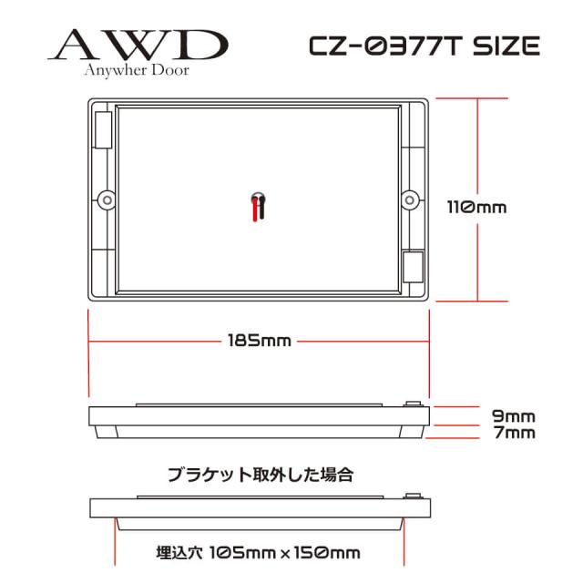 | 取付方法 | 表面カバー(枠)を外します。(爪4か所) 土台ユニット2か所のビス穴を利用して固定します。(穴径4mm×2ケ所/芯々161mm)また、アタッチメントを外して102mm×148mmにくり抜いた場所に裏側を10mm程度埋め込んで設置する事が出来ます。 |