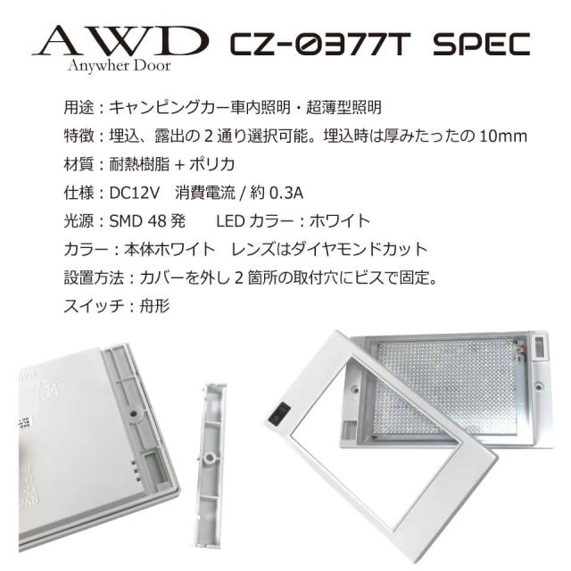 DC12V LED 薄型インテリアライト スイッチ付 自動車照明 車中泊 キャンプ【CZ-0377-T】
