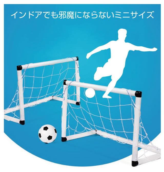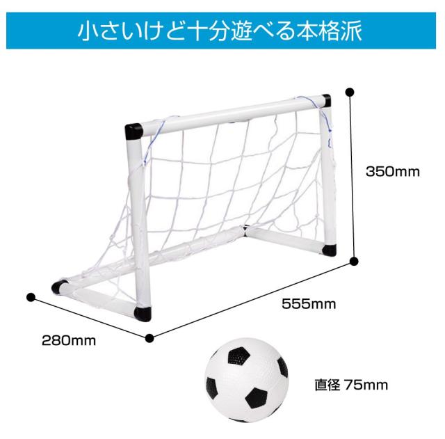 ・室内でも使用できるミニサッカーセットです。 ・ゴールは横幅555mmのミニサイズなのでお家でPK合戦ができちゃいます! ・専用のミニボール・空気入れがセットになっているのですぐに遊べます♪ |