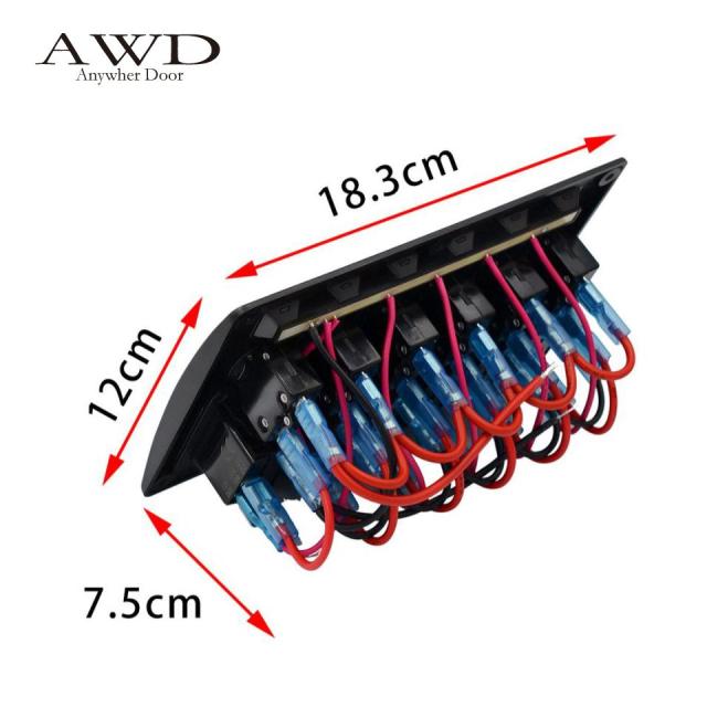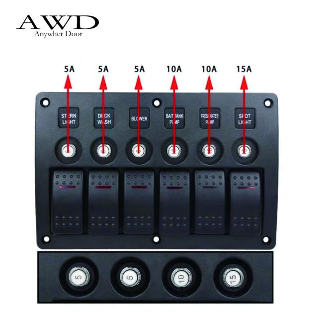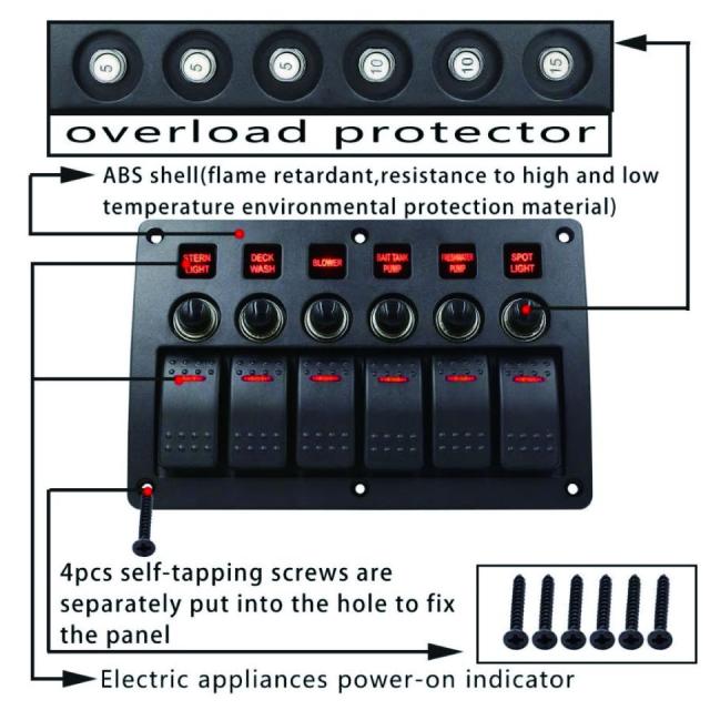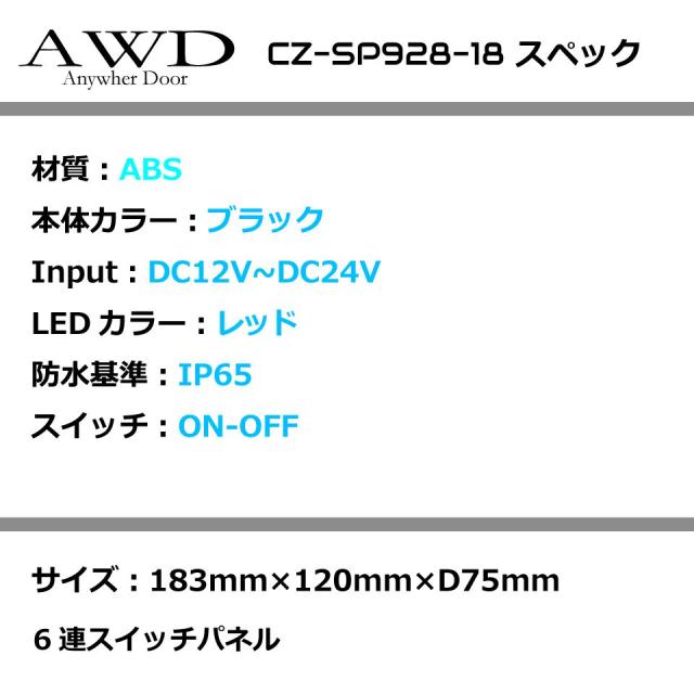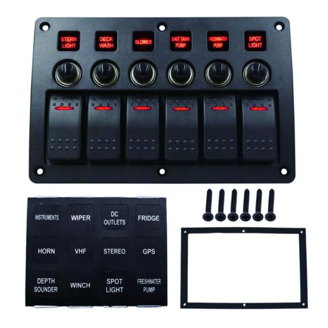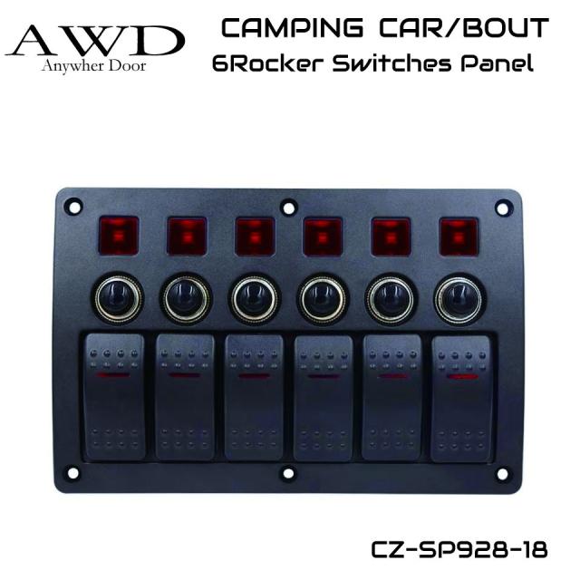 キャンピングカー/ボート 6連ロッカースイッチパネル PCレンズ レッドLED ボード トラック スイッチパネル 防水スイッチ CZ-SP928-18 翌日配達 送料無料