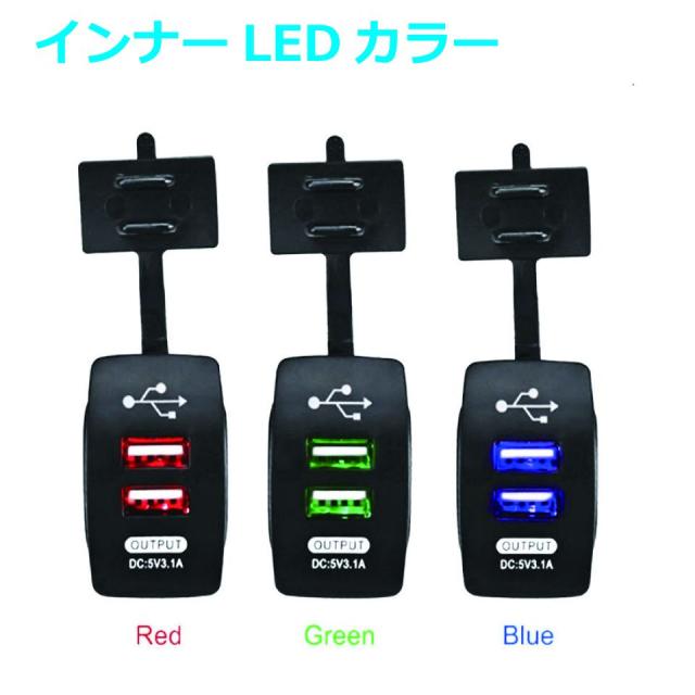 商品名:キャンピングカー/ボート デュアルUSBポート 3.1A LED3カラー