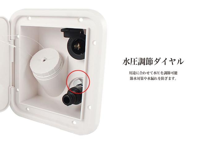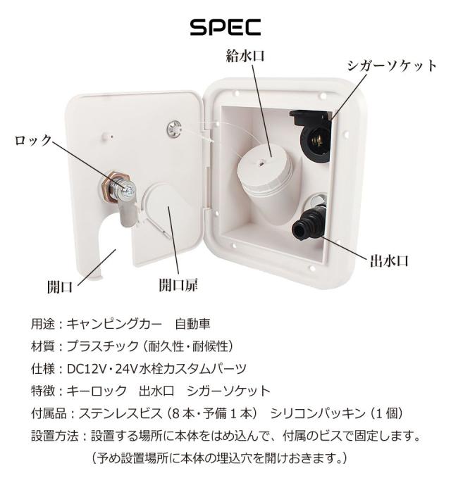 キャンピングカー パーツ 水栓 軽キャンピングカー ソロキャンプ キャンピングカーパーツ 散水栓ボックス 車中泊 車中食 車内避難 防災 車内テレワーク キッチンカー ガーデニング 給水口&散水栓&シガーソケット付 シャワーノズルハッチ WT-INW-WH 送料無料 翌日配達 即日出荷
