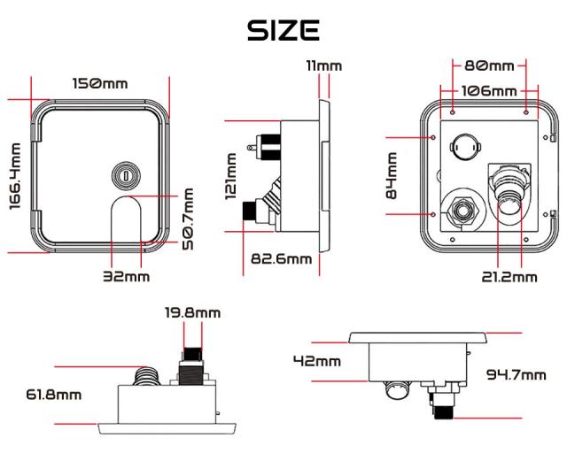 | 商品名 | キャンピングカーパーツ 給水口&散水栓&シガーソケット付 シャワーノズルハッチ |