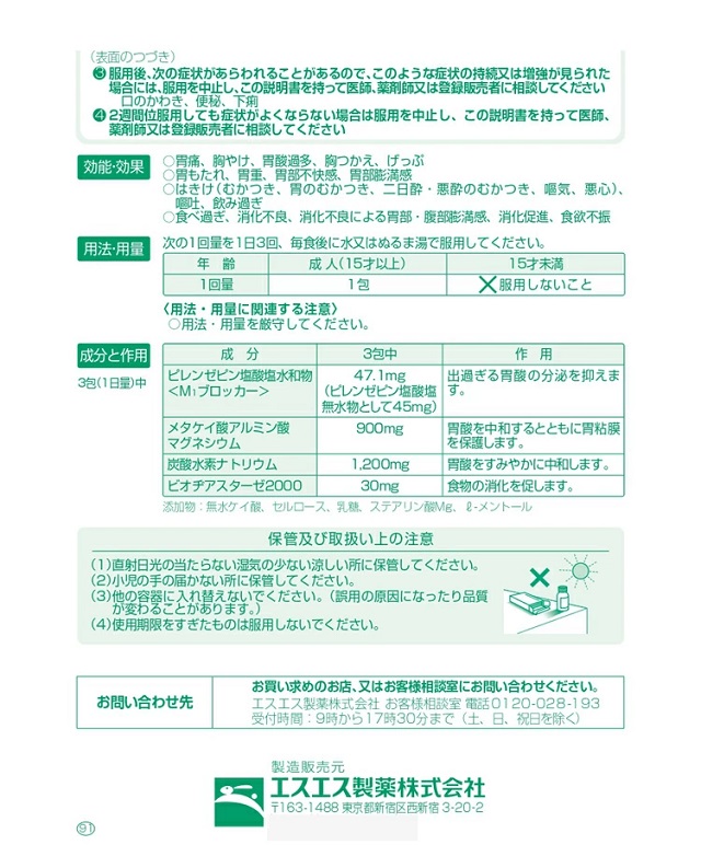 ・食べ過ぎ、消化不良、消化不良による胃部・腹部膨満感、消化促進、食欲不振用法・用量 次の1回量を1日3回、毎食後に水又はぬるま湯で服用してください。