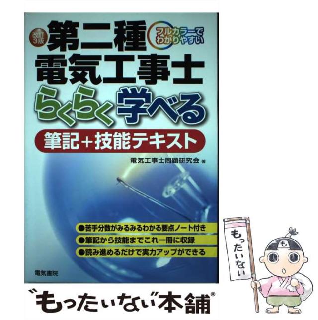 商品名:【中古】 第二種電気工事士らくらく学べる筆記+技能テキスト フルカラーでわかりやすい 改訂3版 / 電気工事士問題研究会 / 電気書院 [単行本]【メール便送料無料】