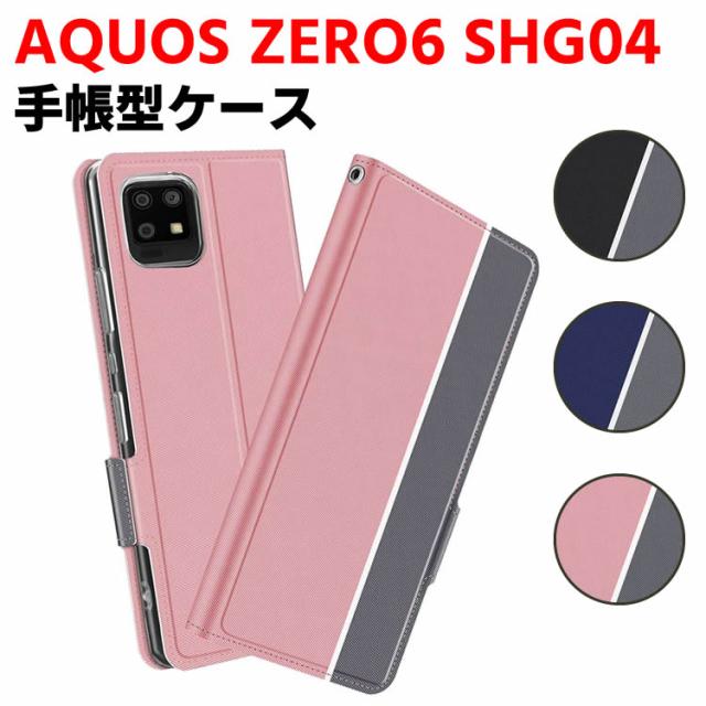 AQUOS ZERO6 SHG04 A102SH 5G ケース 手帳型ケース スマートフォンケース カバー マグネット ツートーンカラー ストラップ付き 定期入れ ポケット シンプル スマホケース スタンド機能 二つ折りケース アクオス sense6