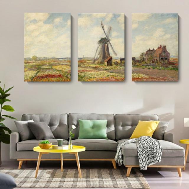 クロード・モネ チューリップ畑・オランダ 3枚セット 油絵 風景画 壁掛け 名画 ファブリック オシャレ インテリア アートパネル プレゼント 送料無料