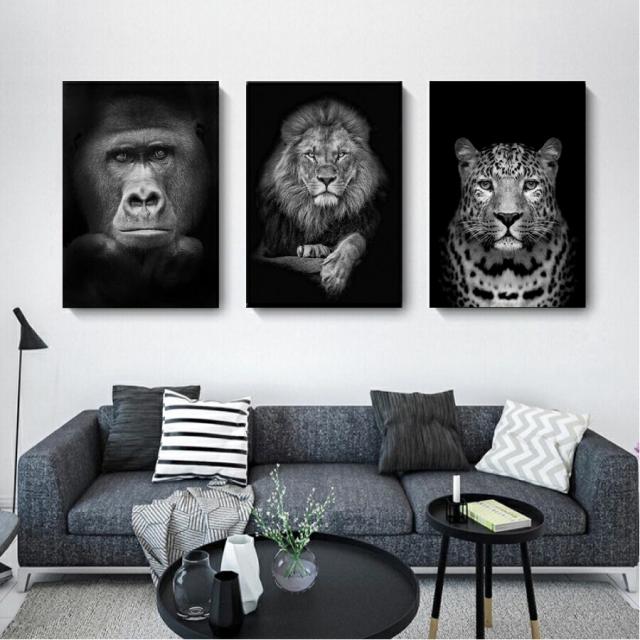 ★大配布中!★父の日 母の日 3枚セット モノトーン 写真 アニマル ライオン オオカミ ゴリラ ヒョウ ファブリック オシャレ インテリア アートパネル プレゼント 送料無料
