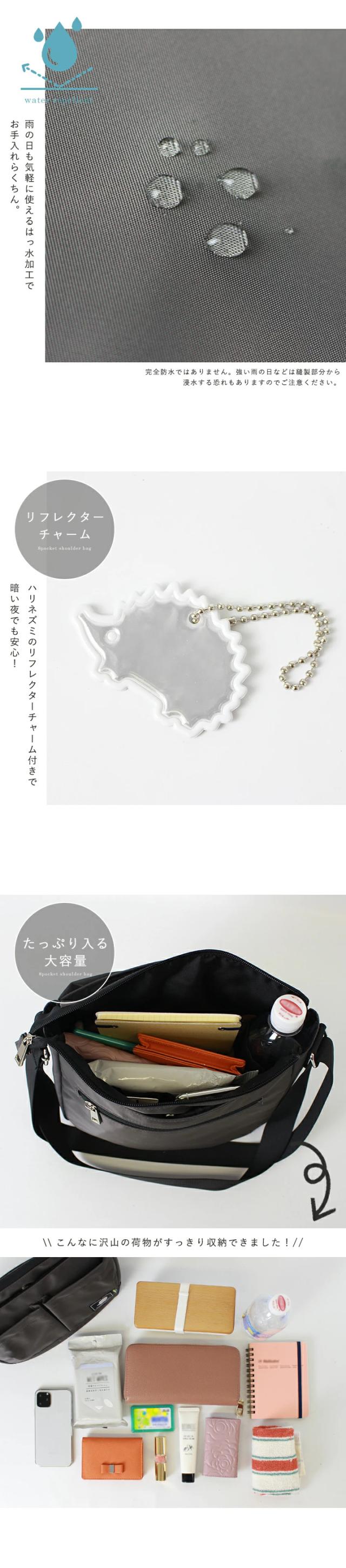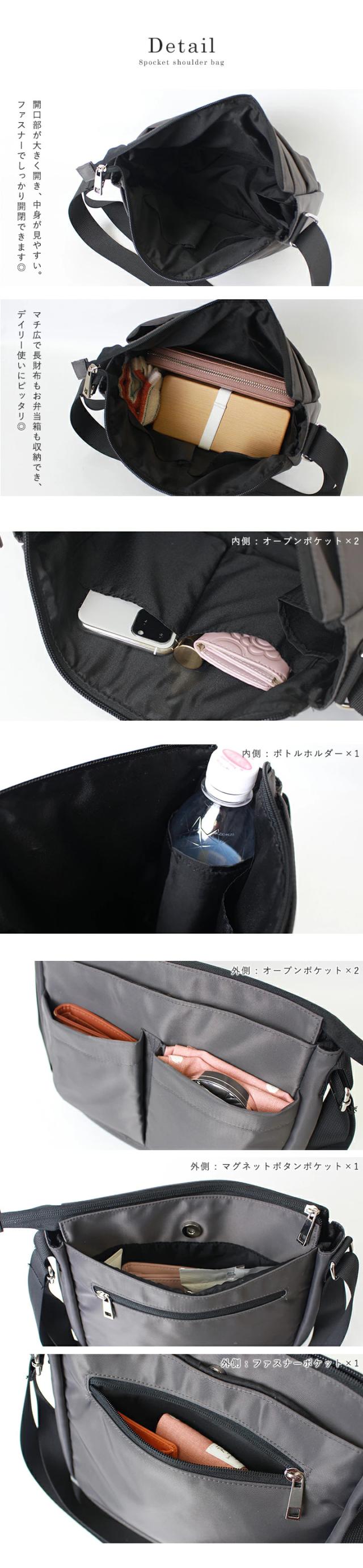 男女兼用できる多機能ショルダーバッグ。