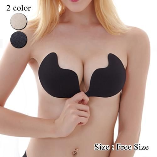 【グラシア】 ヌードブラ 羽根 カップ シンプル デコルテ モールドカップ 可愛い ベージュ ブラック フリーサイズ
