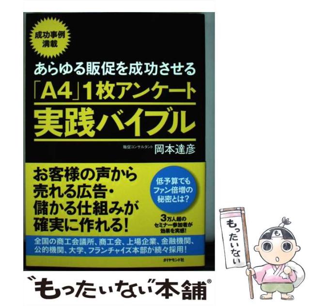 商品名:【中古】 あらゆる販促を成功させる「A4」1枚アンケート実践バイブル お客様の声から売れる広告・儲かる仕組みが確実に作れ / 岡本 達彦 / [単行本(ソフトカバー)]【メール便送料無料】