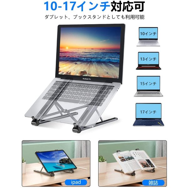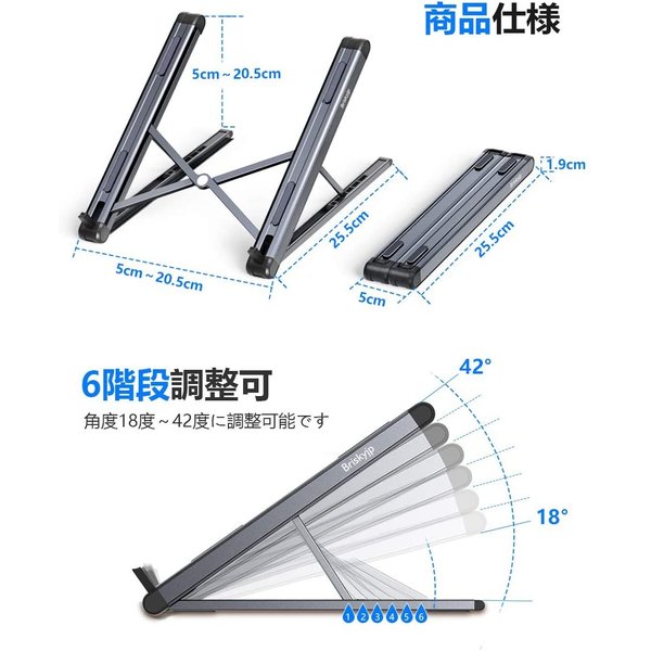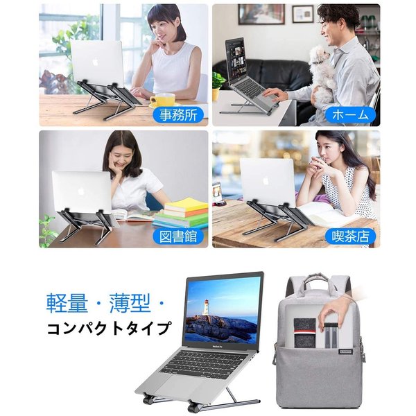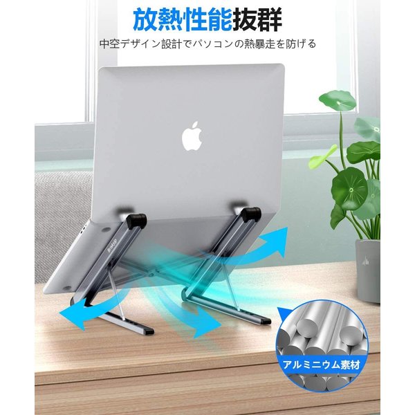 ノートパソコンスタンド PCスタンド タブレットスタンド 折りたたみ式 6段階角度調整 アルミ合金製 軽量 持ち運び便利