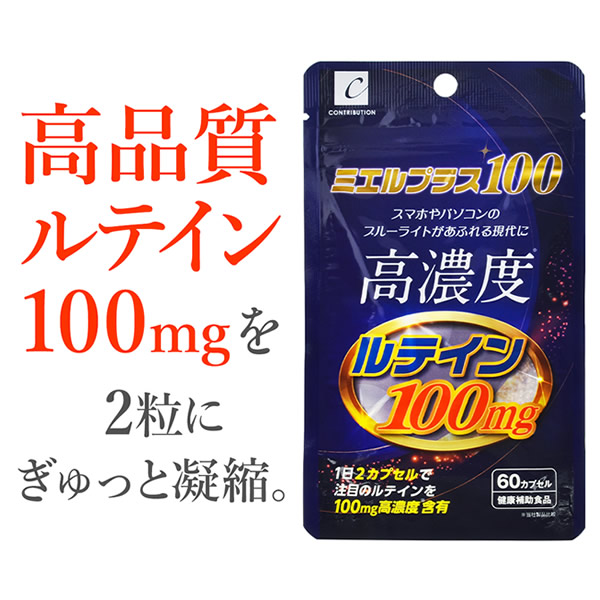 【正規販売店】ミエルプラス100 60カプセル (メール便送料無料) ルテイン マリーゴールド カロチン カロテノイド サプリメント サプリ 高濃度 パソコン スマホ