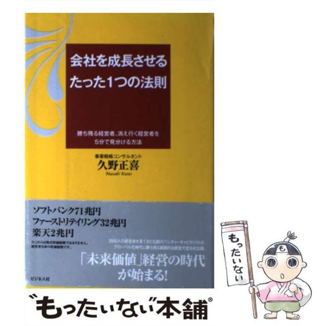 商品名:【中古】 会社を成長させるたった1つの法則 勝ち残る経営者、消え行く経営者を5分で見分ける方法 / 久野 正喜 / ビジネス社 [単行本]【メール便送料無料】