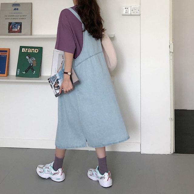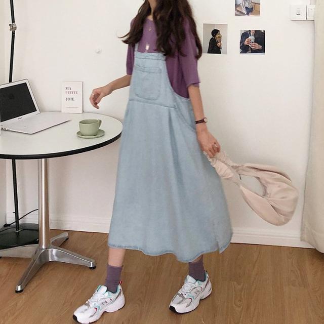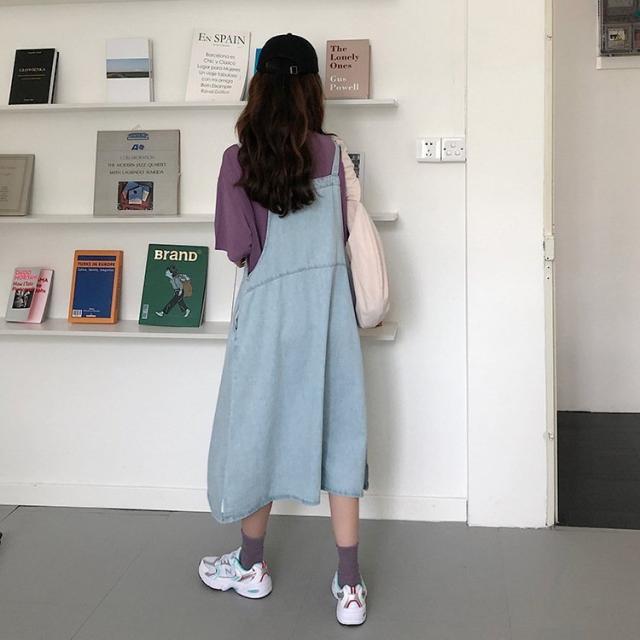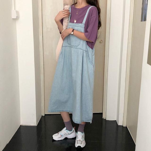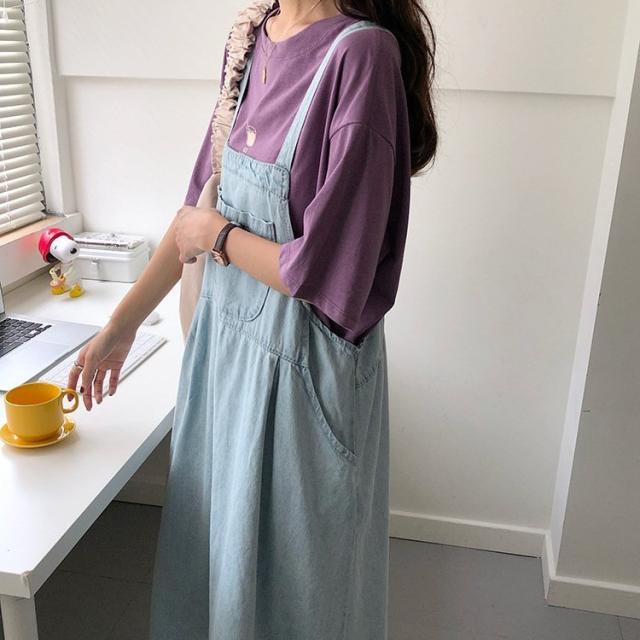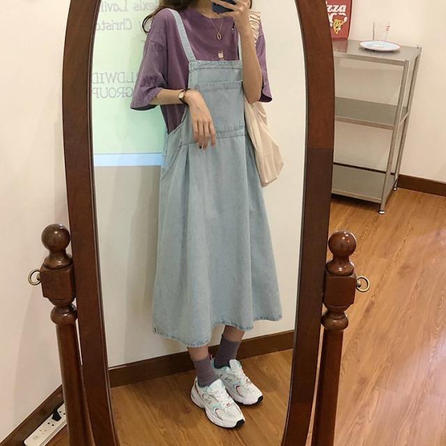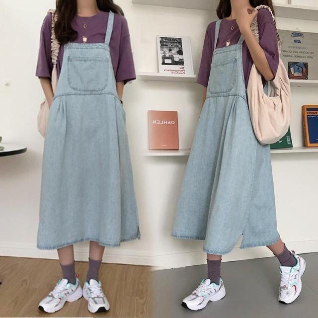 デニム サロペットスカート 大きいサイズ ゆったり 綿 ワンピース Aライン 春秋 ロングワンピース 妊婦服 体型カバー 通勤 オシャレ カジュアル