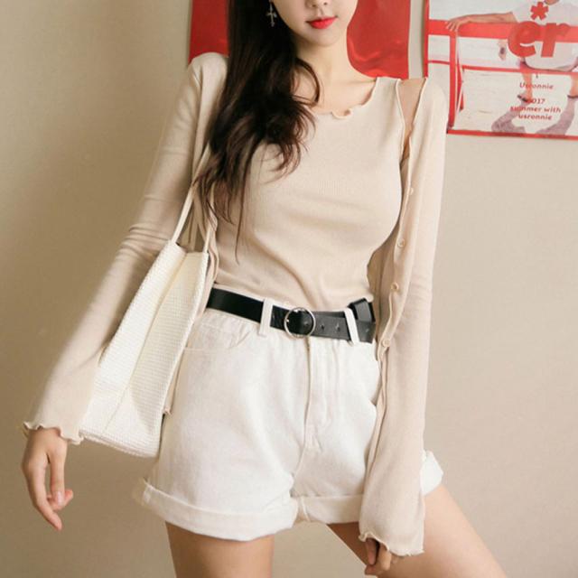 ハイウエスト デニムショートパンツ レディース 夏 ベルト付き ショーパン ロールアップ